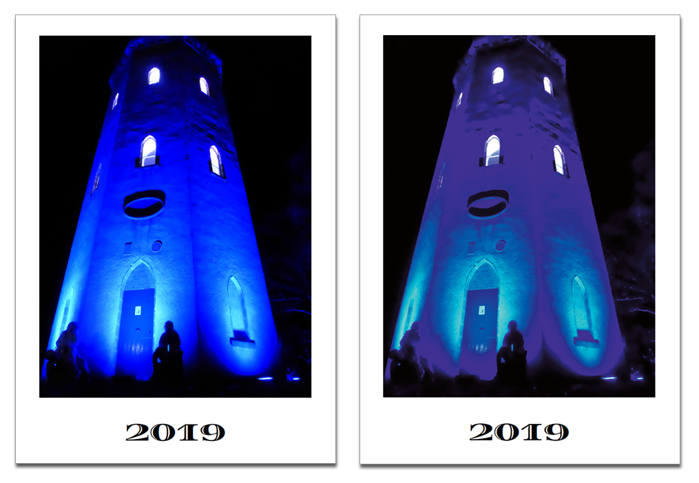 Shown here is an image formatted in sRGB which is lovely and vibrant, and then the same image shown converted to CMYK. You will see the image has lost some of its colours when converted to CMYK - this is because the CMYK spectrum of colour cannot match the same spectrum that RGB can reach.