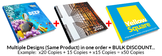 So how does this work? Add multiple designs of the same product type to your basket and we will charge the BULK price. So a basket containing, x20 of one design, and x15 of the other two designs, equals a total of x50. It is the total qty the system will work out your final price - giving you a massive saving!